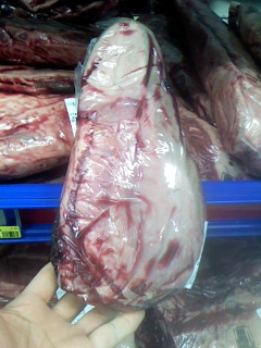 値段は、安いのですが 牛肉も豚肉も巨大なブロックになっていて
