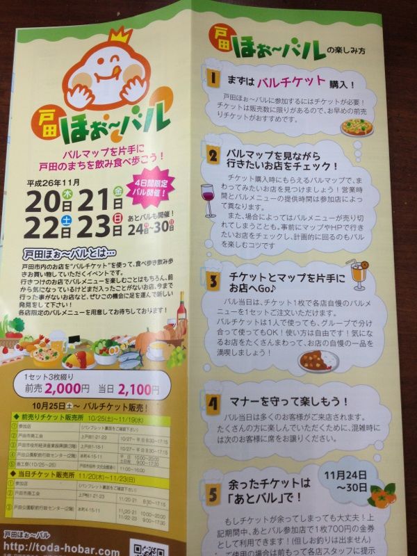 バルチケットを購入し、バルに参加してるお店に行くと、そのお店独自のお買い得バル限定価格商品(一品700円以上の商品がチケット一枚で購入出来る)を楽しめるって企画です。