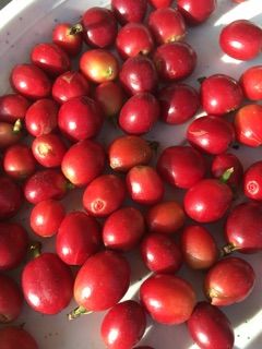 収穫したコーヒーの実。